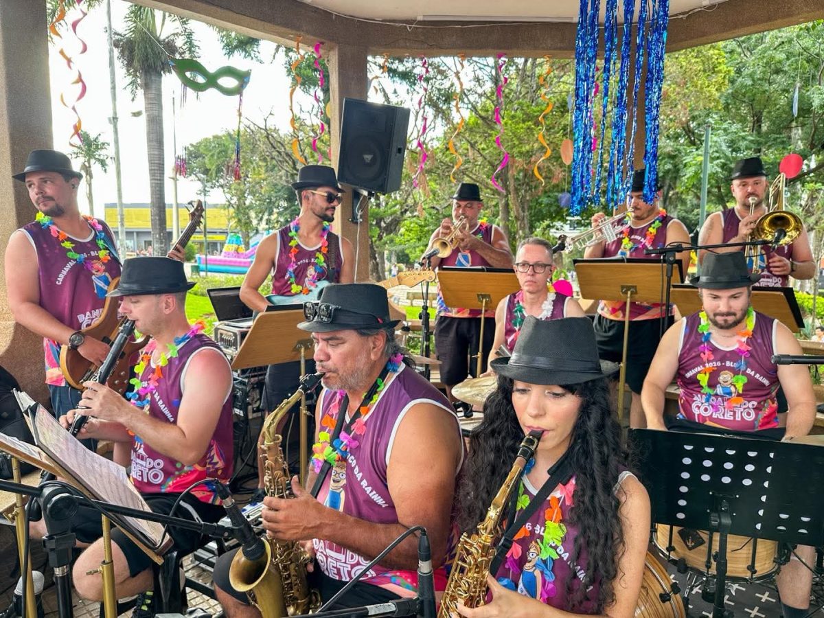Já a Corporação Musical e o inédito Bloco da Rainha evidenciaram nas Marchinhas, ícones da folia, e arregimentaram excelente público no Coreto da Praça XV de Novembro.