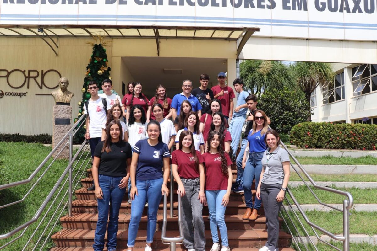 Os jovens do Ensino Médio da E.E. “Dona Cotinha”, de Conceição Aparecida (MG), também passaram pela experiência do Portas Abertas. Os alunos foram recepcionados pela analista de Organização do Quadro Social, Érika Cristina Vilas Boas, e pelo analista de Relações Corporativas, Edir Antônio de Siqueira, que apresentaram a cooperativa e seu papel na cafeicultura.