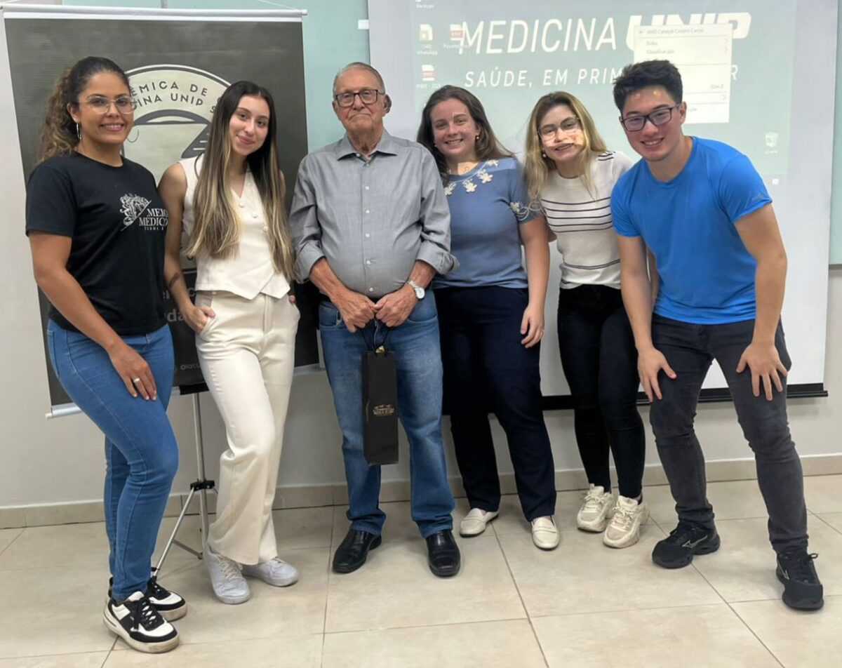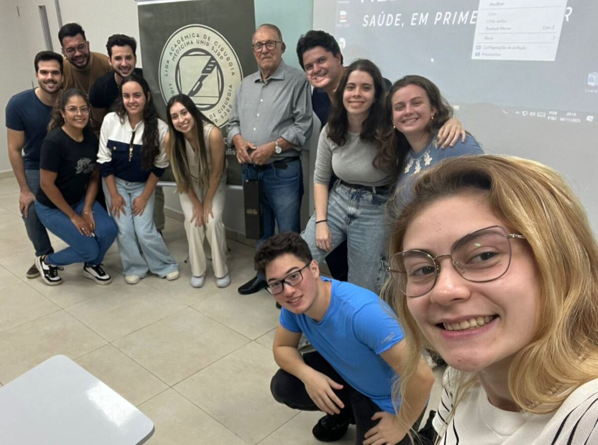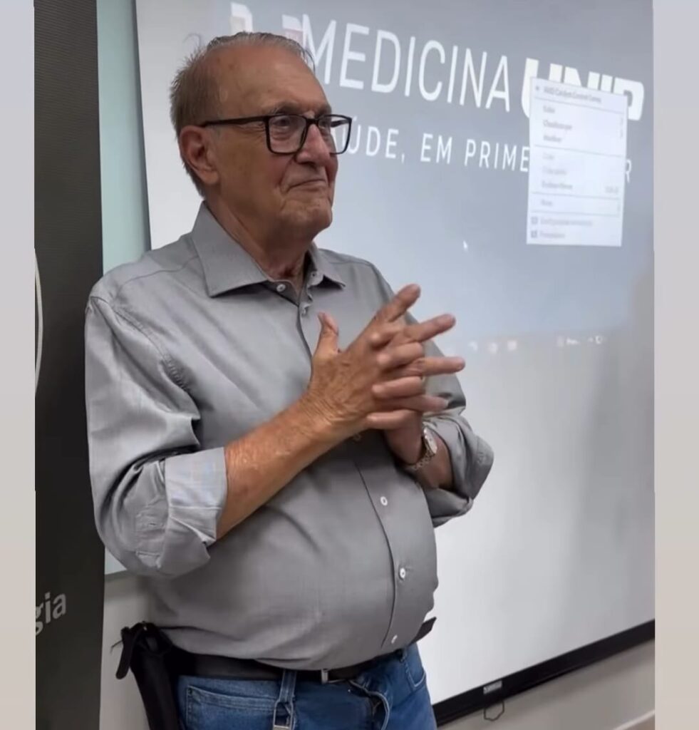 “Durante a palestra, o Dr. Teixeira conduziu o tema com abordagem didática, de maneira envolvente para transmitir o conhecimento, tornando cada explicação clara, interessante e instigante, despertando a vontade de continuar ouvindo, aprendendo e refletindo. Mais do que uma palestra, foi um encontro inspirador. Ele é uma figura admirável, que faz parte da história de muitos e representa um exemplo de dedicação à medicina. Para nós, alunos, é extremamente valioso poder estar em contato com alguém que alia conhecimento, sensibilidade e uma paixão genuína pelo que faz. Saímos desse momento motivados a aprender ainda mais e certos de que queremos continuar construindo espaços de troca como esse. Sem dúvida, esperamos por mais encontros com o Dr. Teixeira, porque ouvir e aprender com ele é sempre uma experiência ímpar”. Maria Catharina Vechini Dalbon