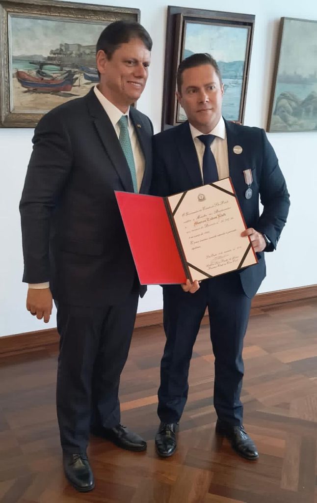 A cerimônia ocorreu no Palácio dos Bandeirantes e também condecorou o procurador-geral de Justiça, Paulo Sérgio de Oliveira e Costa, com a Ordem do Ipiranga – Grau Gran Cruz, a maior distinção do Estado.