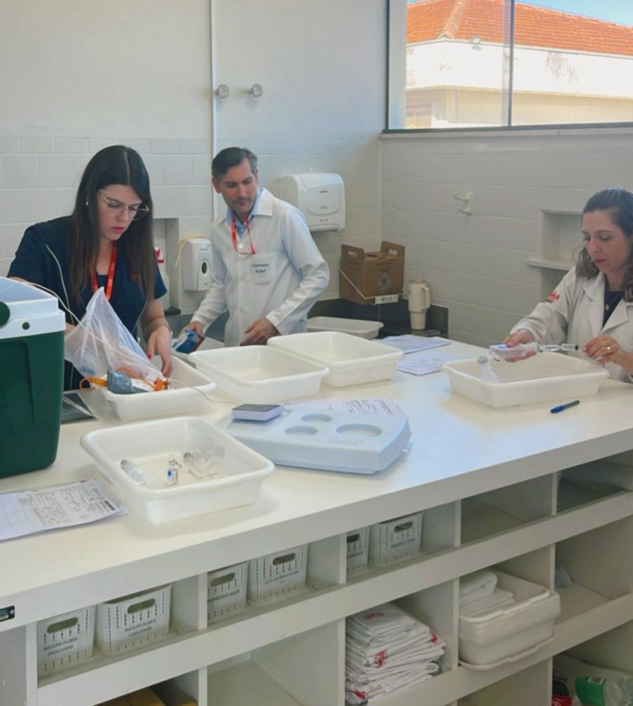 Parte da equipe na farmácia, que também funciona na mesma estrutura do Setor