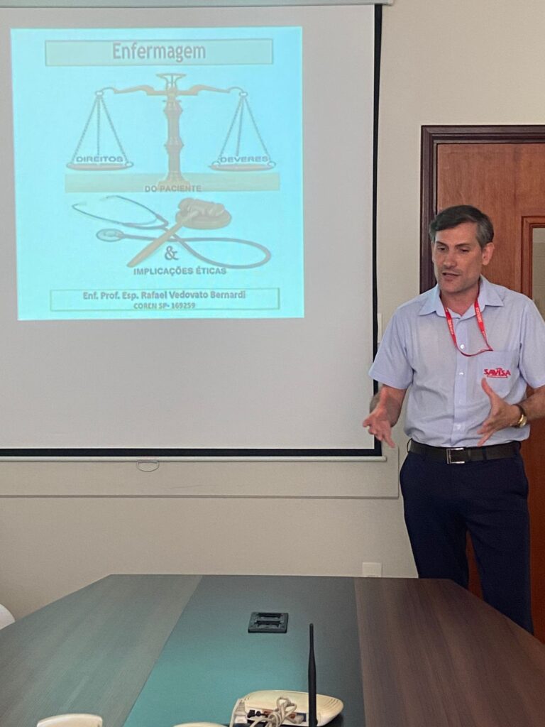 A Santa Casa Hospital São Vicente, por meio do Serviço de Educação Permanente junto à Comissão de Ética de Enfermagem promoveu abordagem e treinamento sobre o tema “Ética e Prática Assistencial: Decisões que Salvam e Respeitam Vidas”.