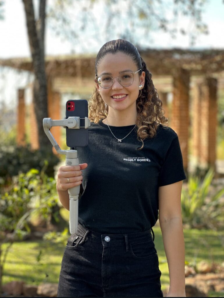 Nicoly Gomes Serrano: Desde pequena, o universo da fotografia e do vídeo esteve presente na minha vida. Grande parte dessa paixão veio da minha mãe, que sempre gostou de registrar todos os momentos com fotos. Cresci valorizando esse registro e sempre contei com o apoio dos meus pais, que são meus maiores incentivadores. À medida que fui crescendo, comecei a me interessar por gravar vídeos, inclusive para o YouTube, chegando a ter um canal na época. Na adolescência, especialmente durante a pandemia, comecei a produzir conteúdos sobre cabelo para o Instagram, e consegui crescer bastante na plataforma, chegando a 40 mil seguidores, com grande parte do público vindo de outras cidades. No entanto, percebi que aquele tema não despertava mais meu verdadeiro interesse, e aos poucos fui me afastando até deixar completamente as redes sociais como influenciadora. Nesse período, eu estava no 3º ano do Ensino Médio, uma fase de decisões importantes sobre qual curso seguir na graduação. Considerei diversas opções, incluindo engenharia e arquitetura, mas nenhuma combinava comigo. Após refletir sobre meus interesses, encontrei o curso de Publicidade e Propaganda, que comecei em 2023. Desde então, estou muito satisfeita e feliz com minha escolha acadêmica, e não me vejo seguindo outro caminho.