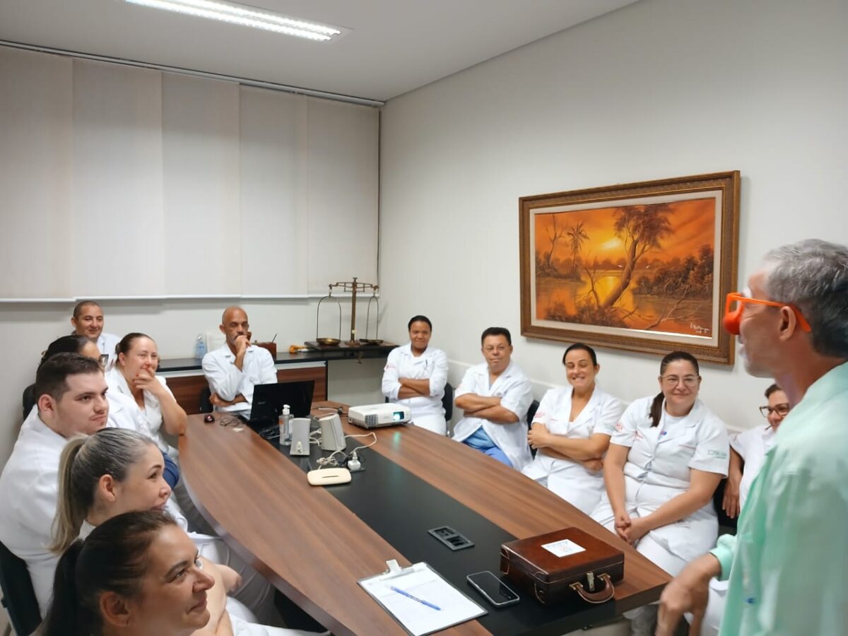 Essa atividade foi mais uma ação promovida pelo Núcleo de Educação Permanente, colaborando à qualificação, reciclagem e formação em humanização junto à equipe de Enfermagem da Santa Casa.