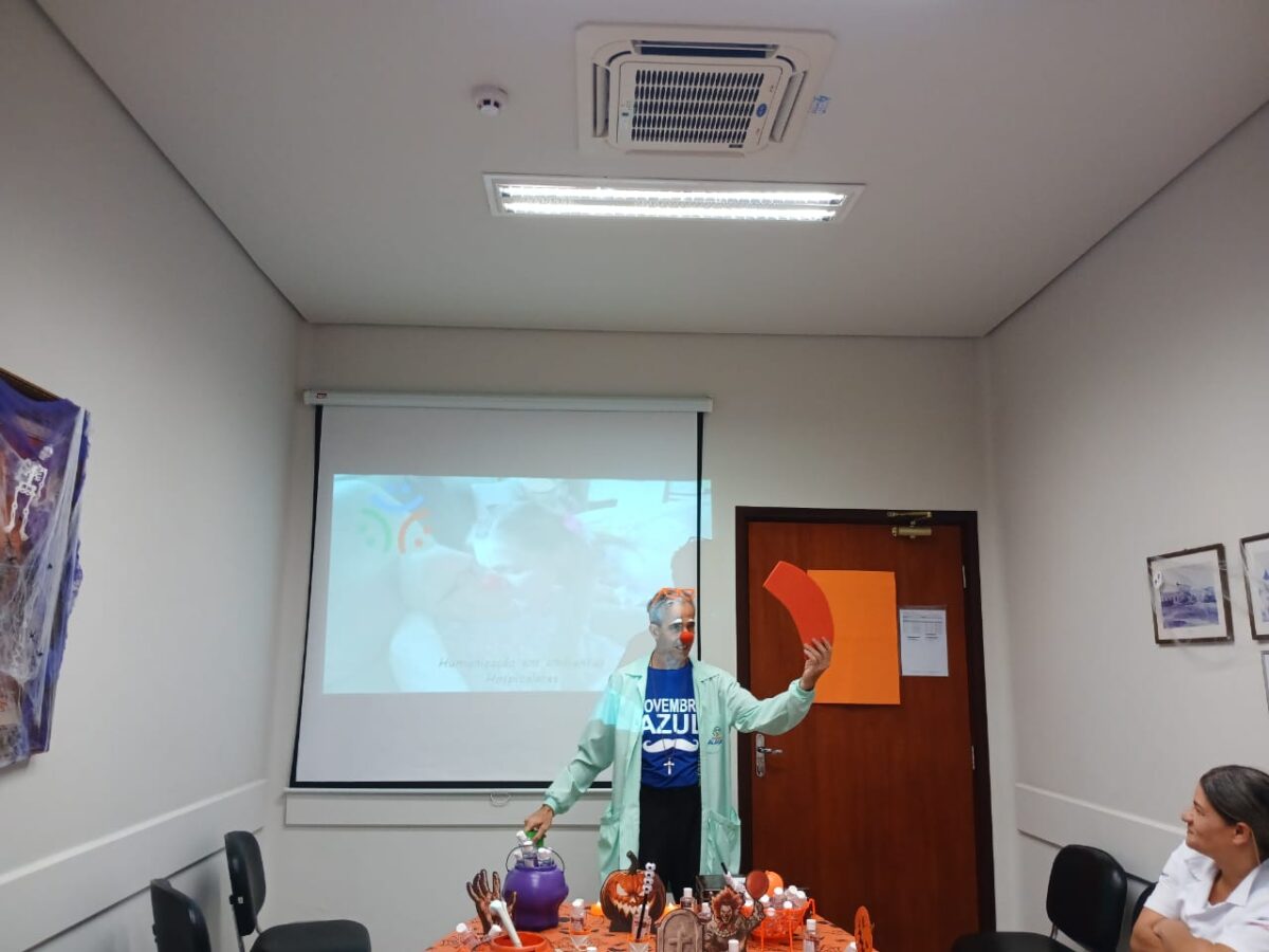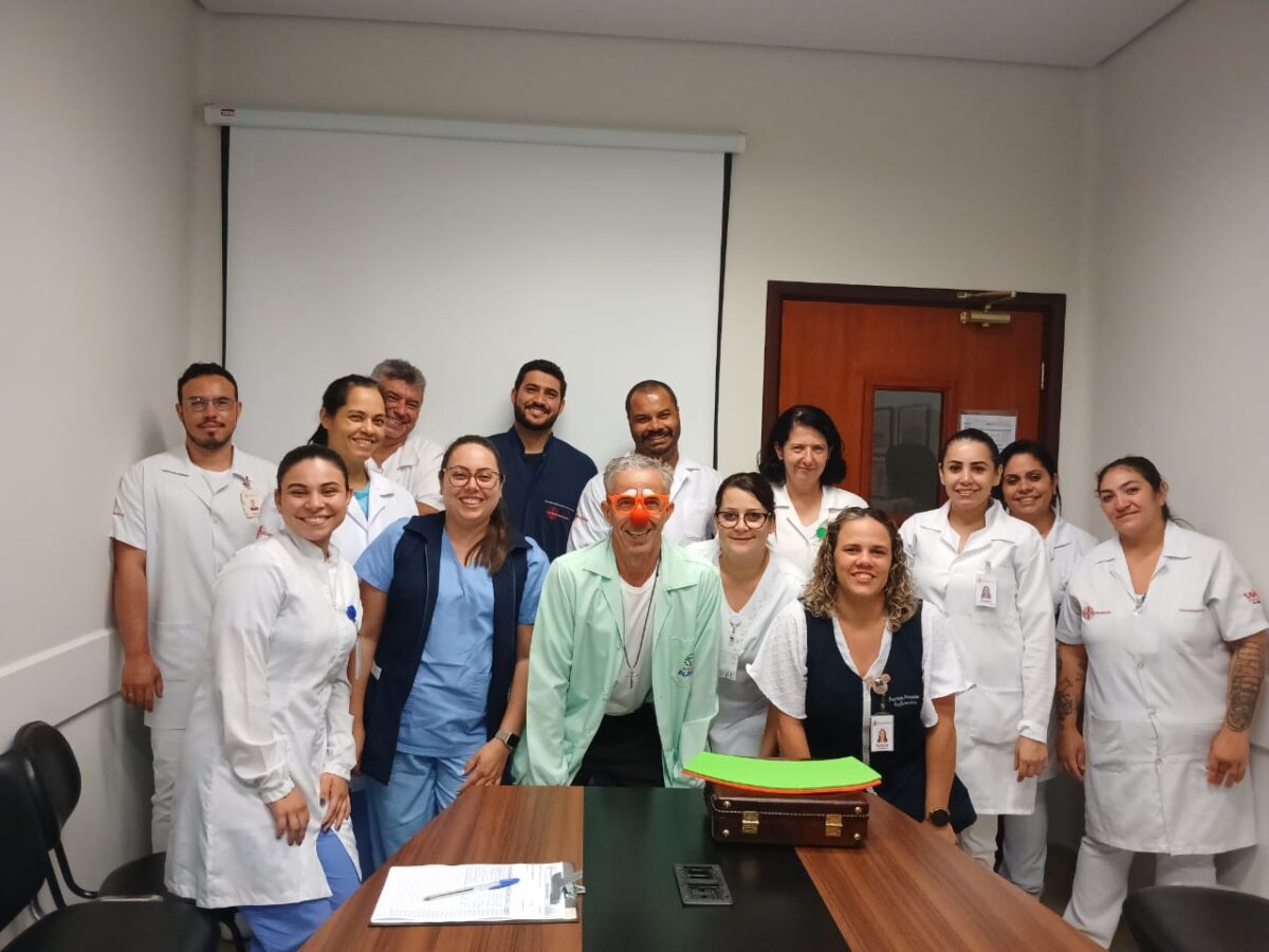 “Neto destacou o tema, junto aos profissionais da Enfermagem, enfatizando a importância do otimismo, e até da alegria como ferramentas que podem contribuir ao trabalho no ambiente hospitalar. Ele, inclusive, estava caricato de ‘palhaço da alegria’, mostrando que a humanização também pode ser promovida com leveza”, observou Amanda.