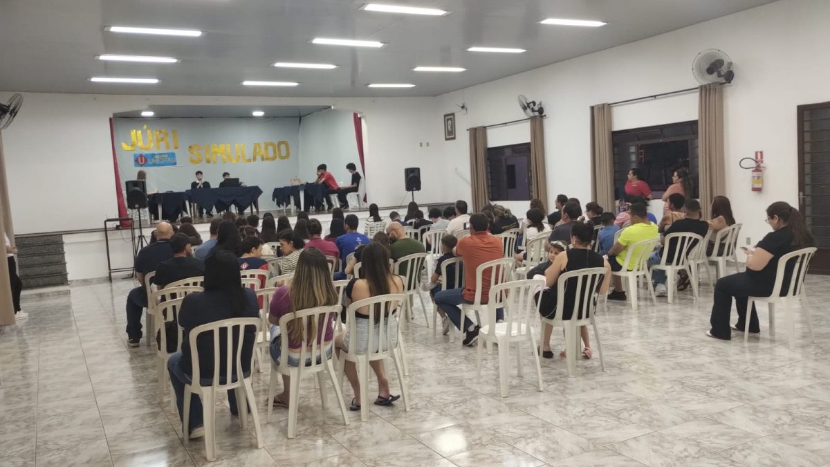 O ‘evento jurídico’ foi apresentado ao público, formado por pais, familiares e demais estudantes no salão do Colégio, preparado especialmente para a atividade, que foi composto por todas as peças, sendo Juiz, Jurados, Promotoria, Defesa, Réu, Testemunhas, Oficial de Justiça, Escrivão.