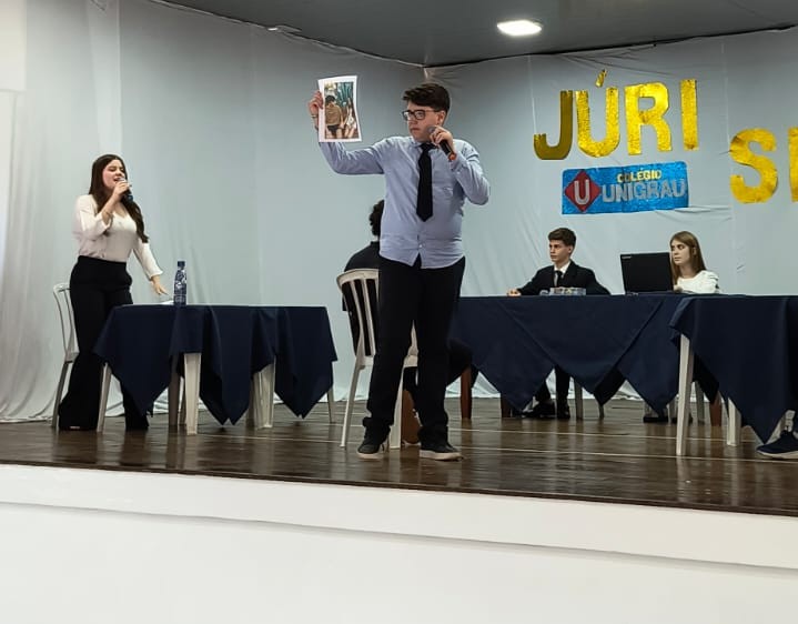 Uma atividade que colocou em prática a persuasão, a linguagem escrita e corporal, a expressão e o raciocínio dos alunos das turmas “A” e “B”, do 8º Ano, do Colégio Unigrau: o Júri Simulado.
