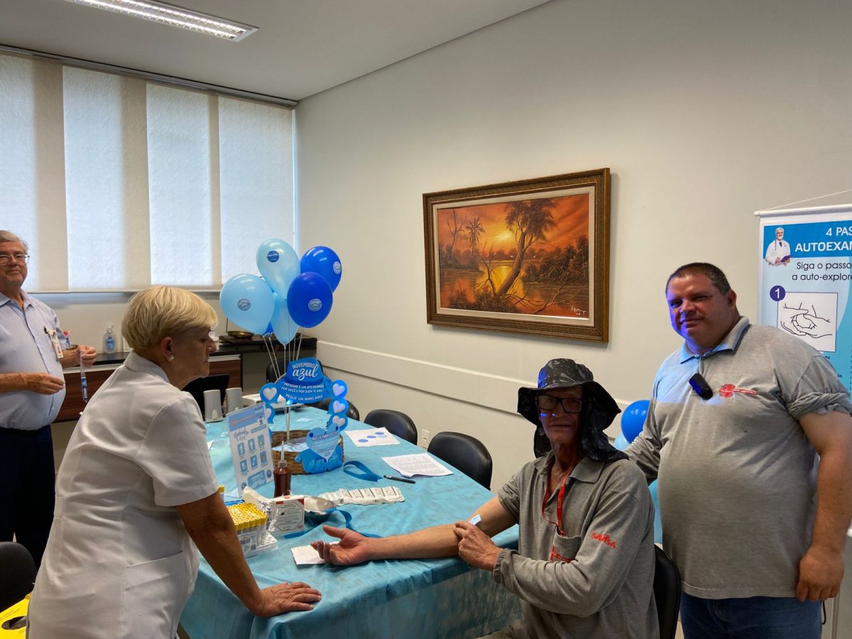 Exames para coleta de PSA (exame de sangue) foram ofertados aos colaboradores com idade superior a 45 anos, sendo um cuidado a mais visando prevenir a doença e outras condições relacionadas.