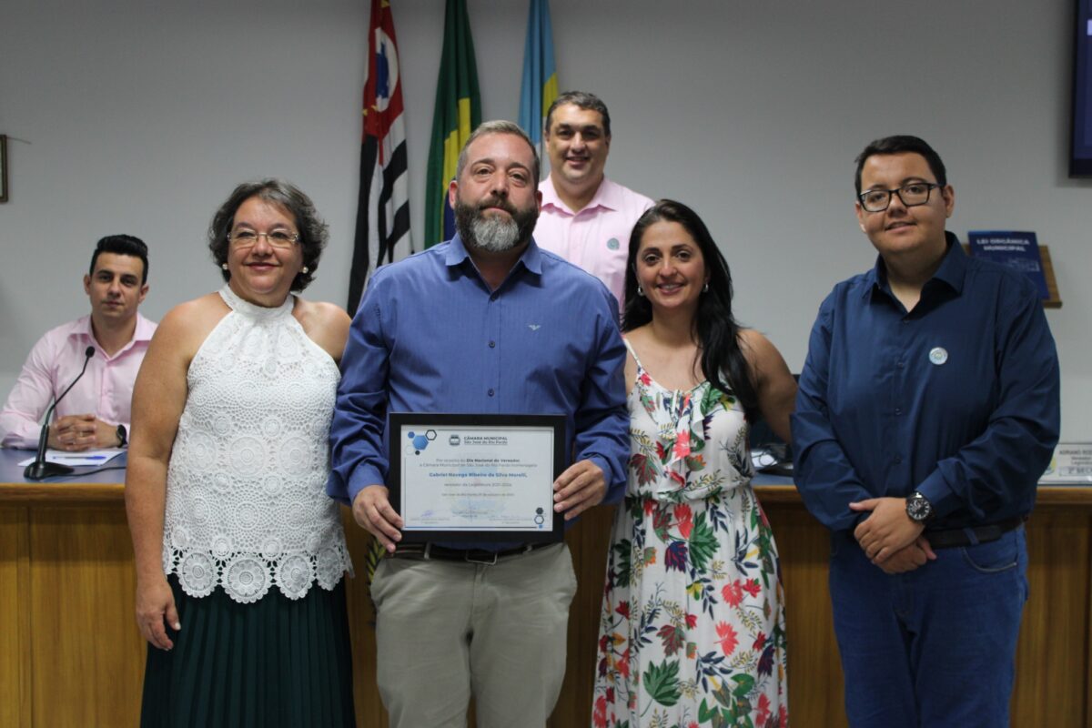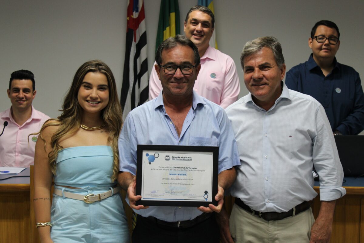 A cerimônia também foi relativa ao Dia do Vereador, comemorado em 01/10, e neste ano os homenageados foram os ex-edis Gabriel Navega e Moraci Bállico, da Legislatura 2021-2024.