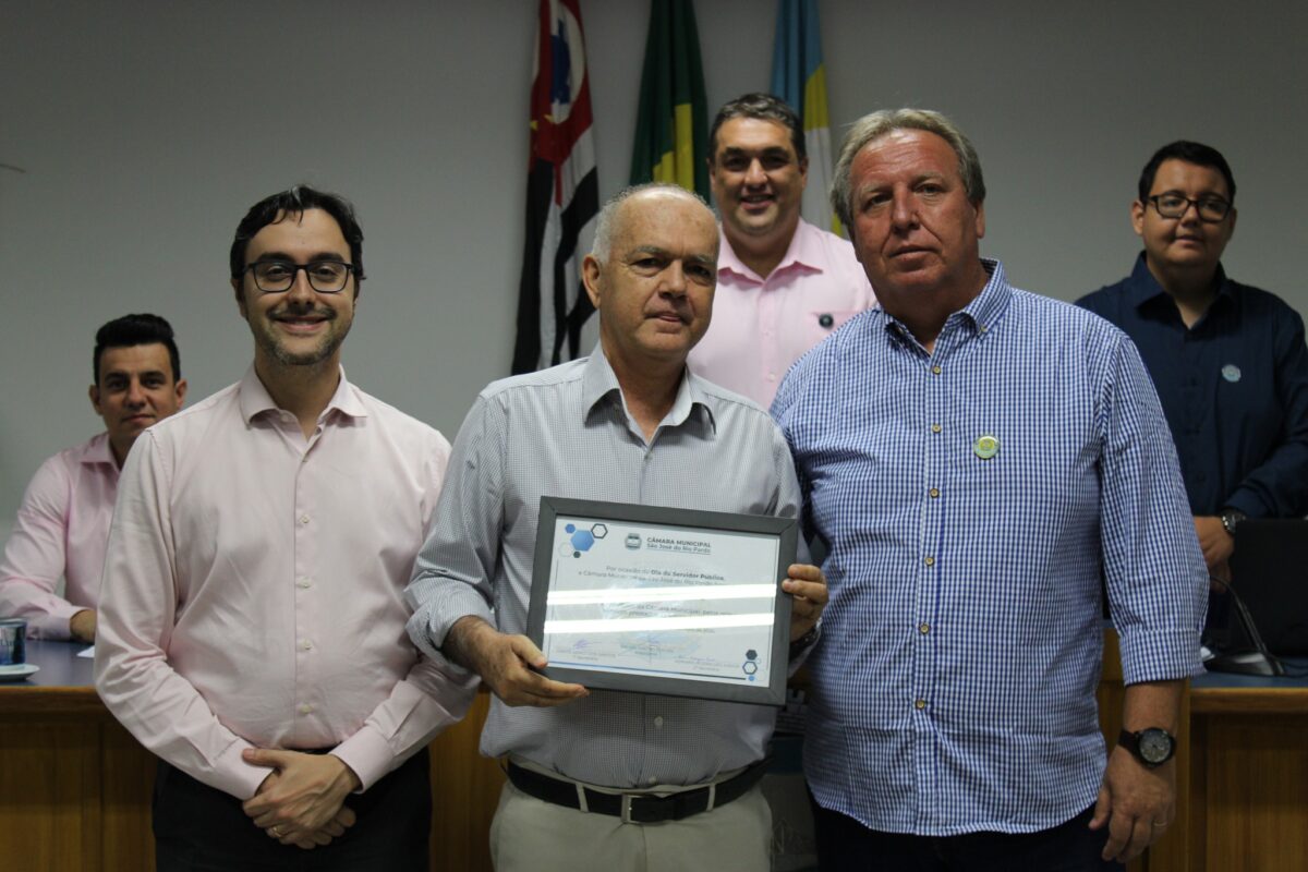 Na mesma cerimônia ocorreu homenagem em alusão ao Dia do Servidor Público, lembrado em 28/10, sendo que, conforme a Resolução nº 05, de 19/10/11, a Câmara homenageia os servidores que se aposentaram no exercício anterior. Neste ano, o servidor aposentado Fabiano Calsoni recebeu a homenagem após 37 anos de trabalhos prestados ao Legislativo Municipal.