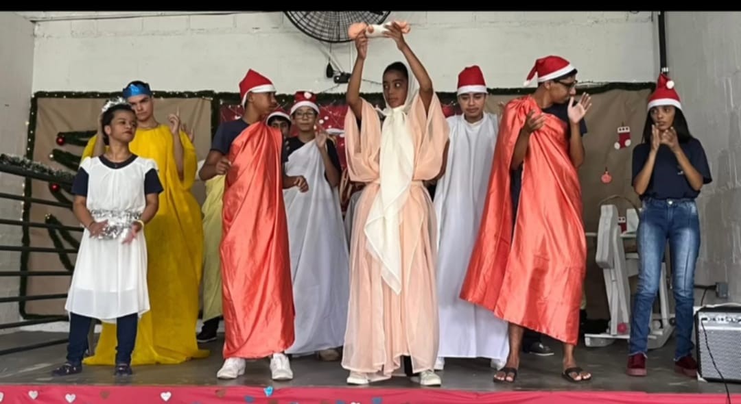 Para retribuir toda gentileza e solidariedade das companheiras, os alunos e professoras participaram de emocionantes apresentações para também festejarem o final de ano na APAE, Associação que atua há décadas no município e realiza exímio trabalho direcionado aos excepcionais.