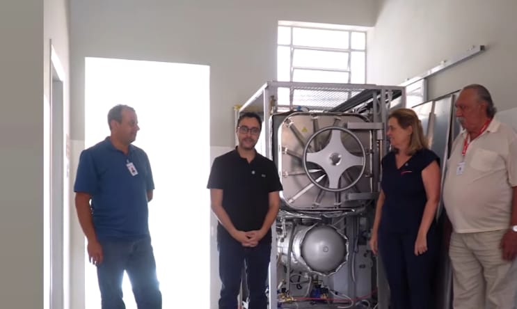 No vídeo divulgado, Jane explicou que a nova auto-clave, com capacidade de 520 litros, está substituindo a antiga, sendo que o equipamento tem uma vida útil de 15 anos. Ela utiliza calor e pressão para eliminar 100% de fungos, bactérias e vírus dos instrumentos, contribuindo a cirurgias mais seguras e risco zero de infecção.