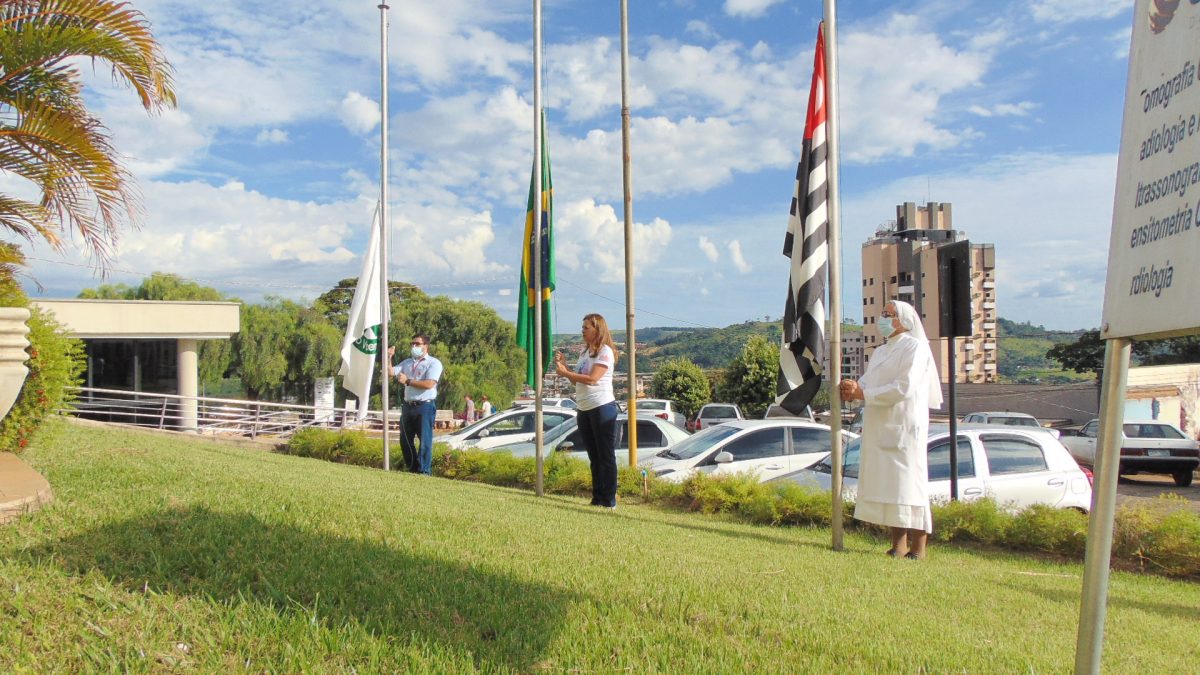 A diretora da instituição, Jane Lúcia Santurbano, o presidente da CIPA – Comissão Interna de Prevenção de Acidentes, Rubens Capuano, a Madre Superiora Irmã Cecília, além de colaboradores de diversas áreas estiveram presentes e entoaram o Hino Nacional junto ao hasteamento das bandeiras na portaria da CEMEDI, nas dependências do hospital.
