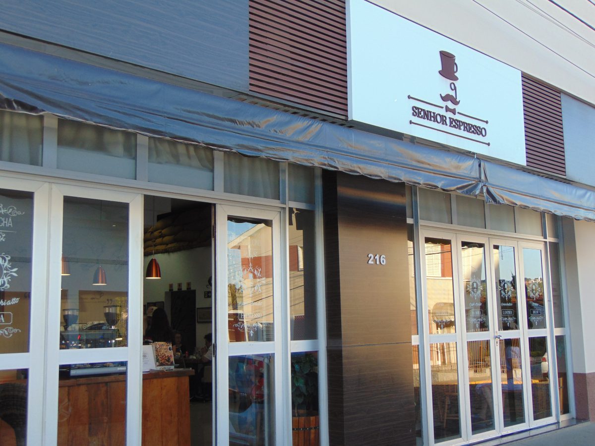 Situado à rua Silva Jardim, o Senhor Espresso ocupa o antigo prédio onde funcionava a antiga empresa de águas da família Polachini: mudança necessária e no momento certo